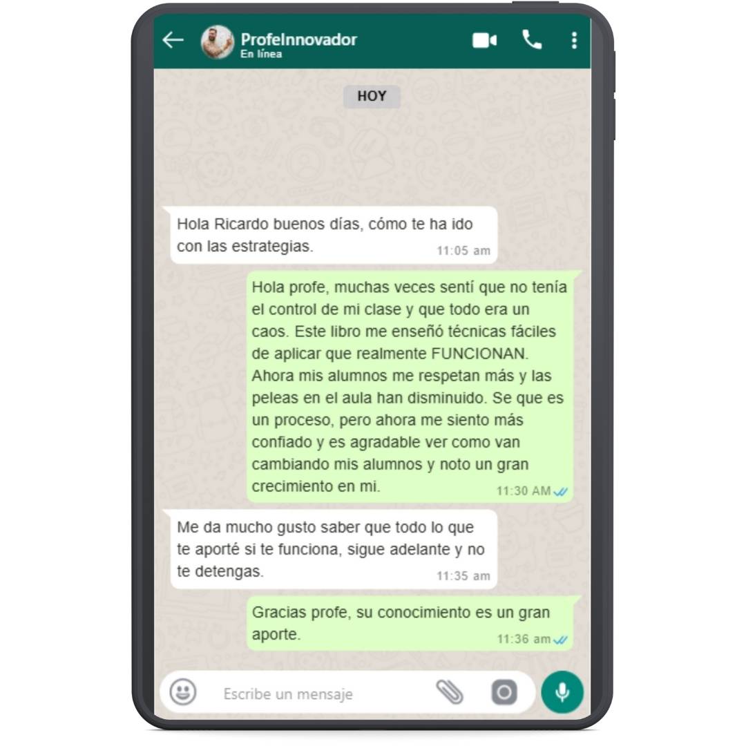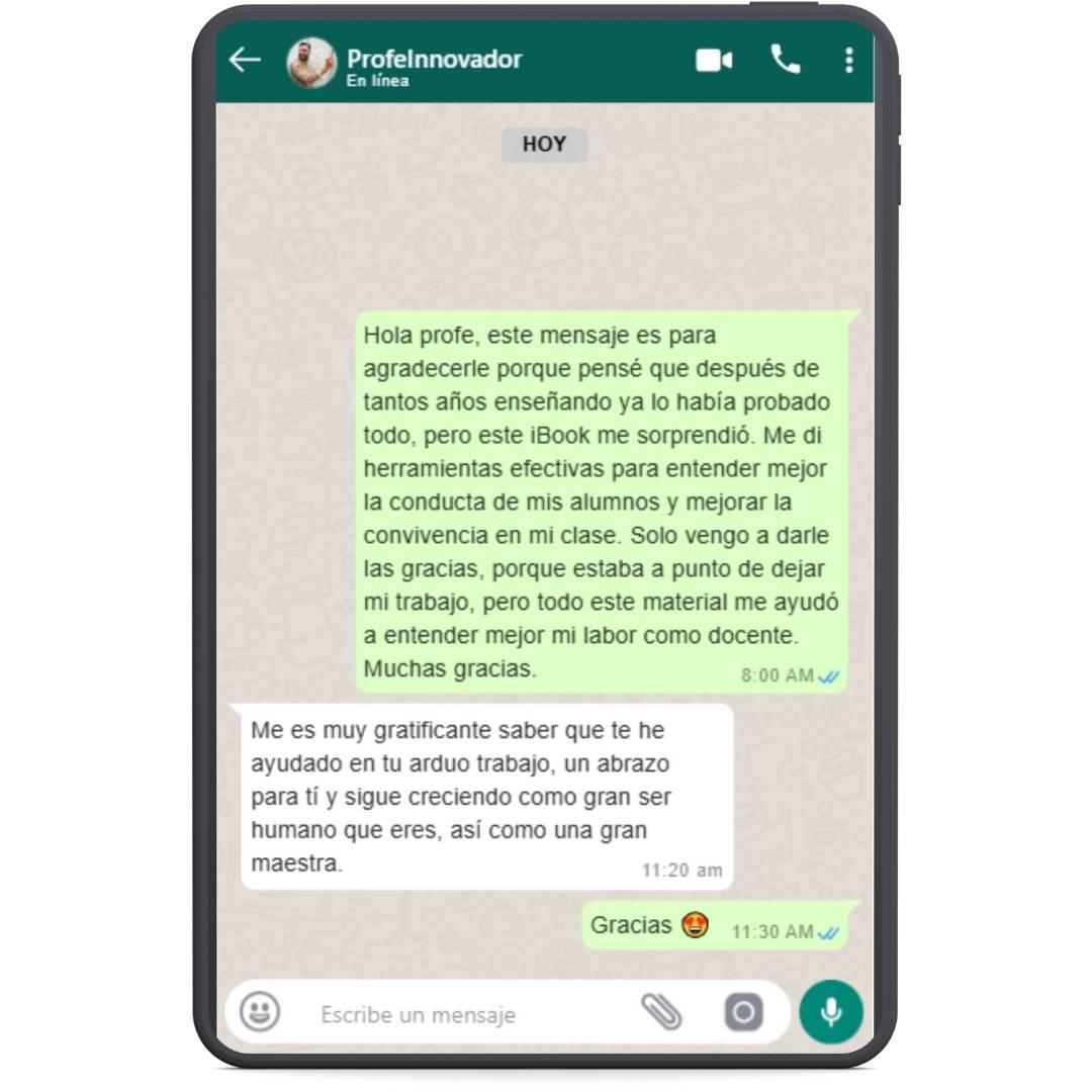 Sí, y no solo eso. Este iBook no es un manual teórico lleno de conceptos difíciles de aplicar. Es una guía práctica y directa, basada en estrategias probadas y utilizadas por maestros reales con excelentes resultados. Desde el primer día, notarás cambios positivos en la actitud y el comportamiento de tus alumnos.